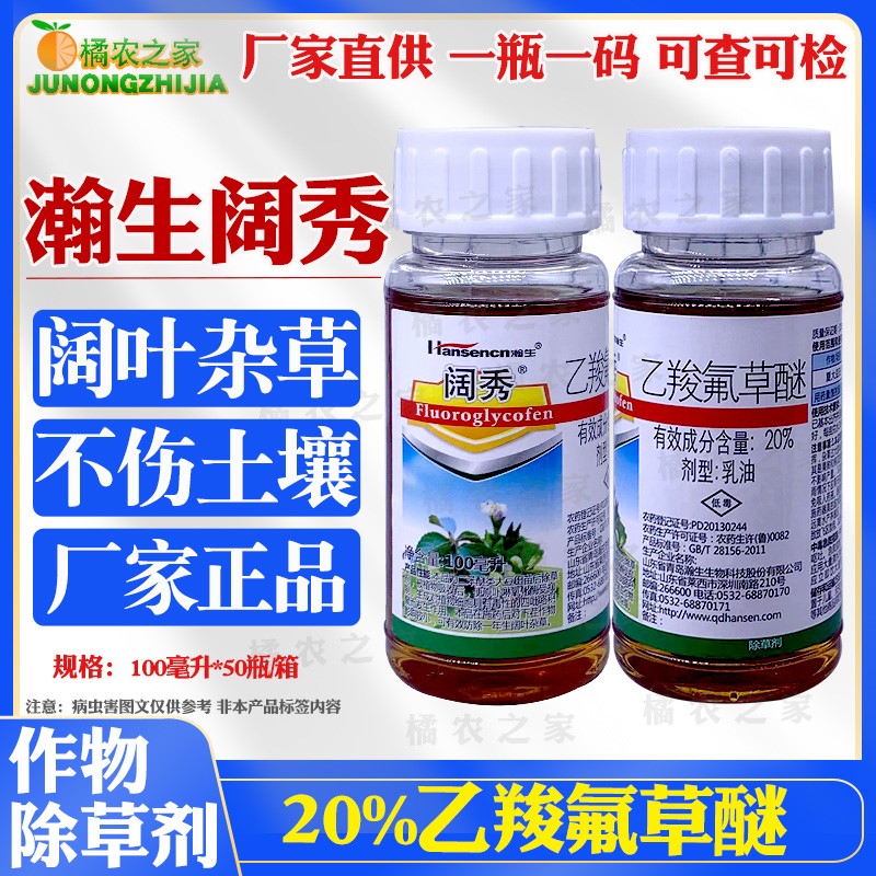 瀚生阔秀 20%乙羧氟草醚专杀阔叶类杂草花生田苗后除草剂100ml